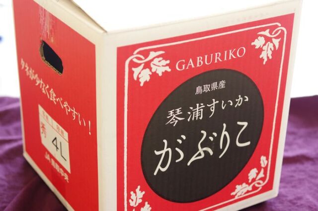 | がぶりこ西瓜のご紹介です がぶりこすいかは種を気にせずに【がぶりっ!】と食べられることから名付けられた 鳥取県特産の黒皮スイカです。 東伯がぶりこは、種なし西瓜ではありませんがほとんど種がなくまれに薄くて小さい白い種が程度。 従来の種なしスイカは甘さも低く、形もいびつになりやすい事もありましたが、栽培方法の 向上により、味・糖度・食味を落とすことのない高品質な種なしのすいかが誕生しました。 西瓜特有の縞模様がなく、漆黒の黒色が気品は漂わせます。 暑い夏に食べたい果物 西瓜の果肉成分は約90%が水分で、体を冷やす作用や利尿作用・塩分の取り過ぎを抑えるなど 夏バテ予防の栄養補給にピッタリの果物です。 この時期お中元・サマーギフトにもお使い頂けるピッタリの果物です。 真夏といえば、花火をみながらスイカをかぶりつく 『日本の夏』の風景ではないでしょうか。。。 |