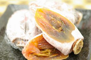 | 内容 | 【商品】 松里枯露柿 (まつさところがき) 【内容量】 化粧箱 450g 約8個〜約13個 化粧箱700g 約10個〜約16個 【産地】 山梨県 |