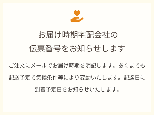 | 配送料金 | 常温便での配送です 別途配送料がかかります。 |